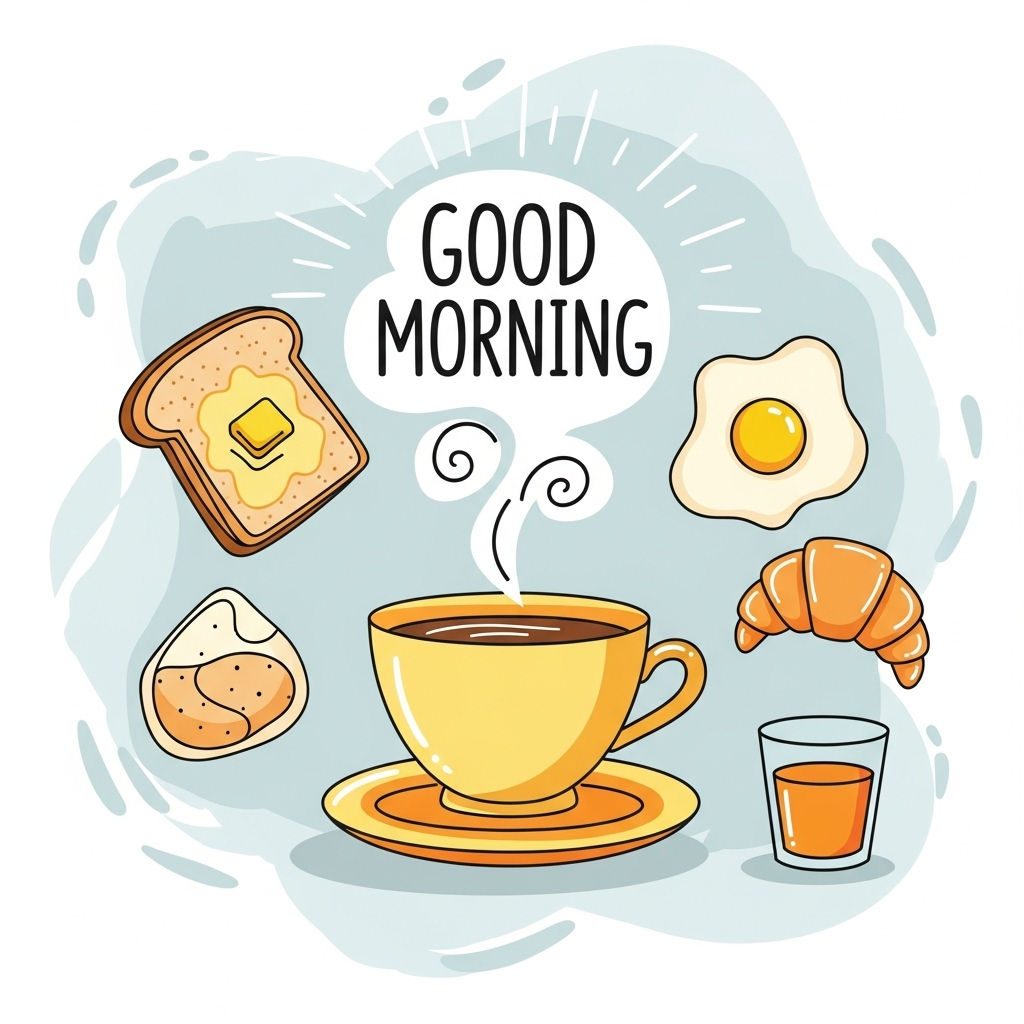 Good Morning Breakfast Illustration with Coffee and Pastries