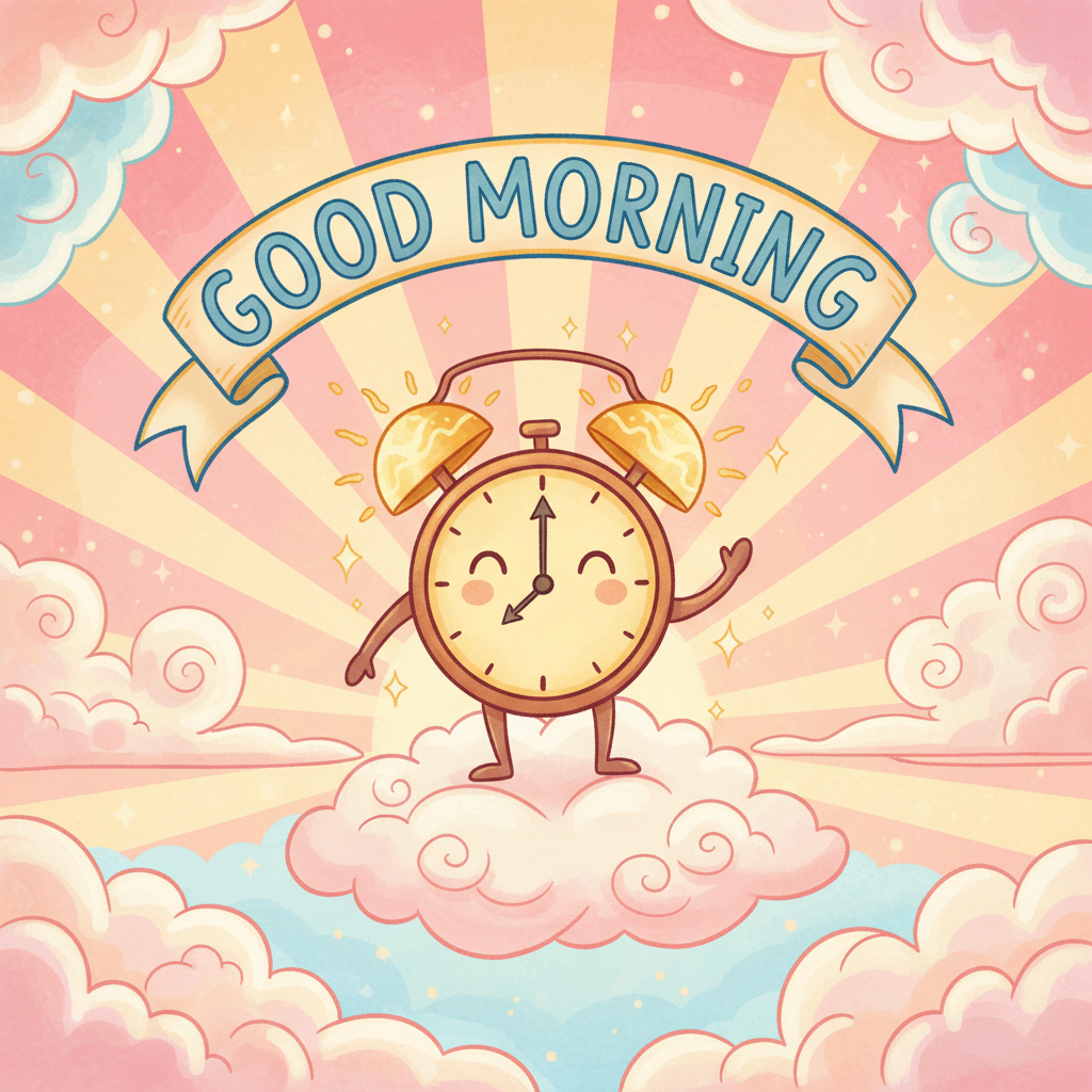 Cute Good Morning Alarm Clock Illustration: Cheerful Wake-Up Art