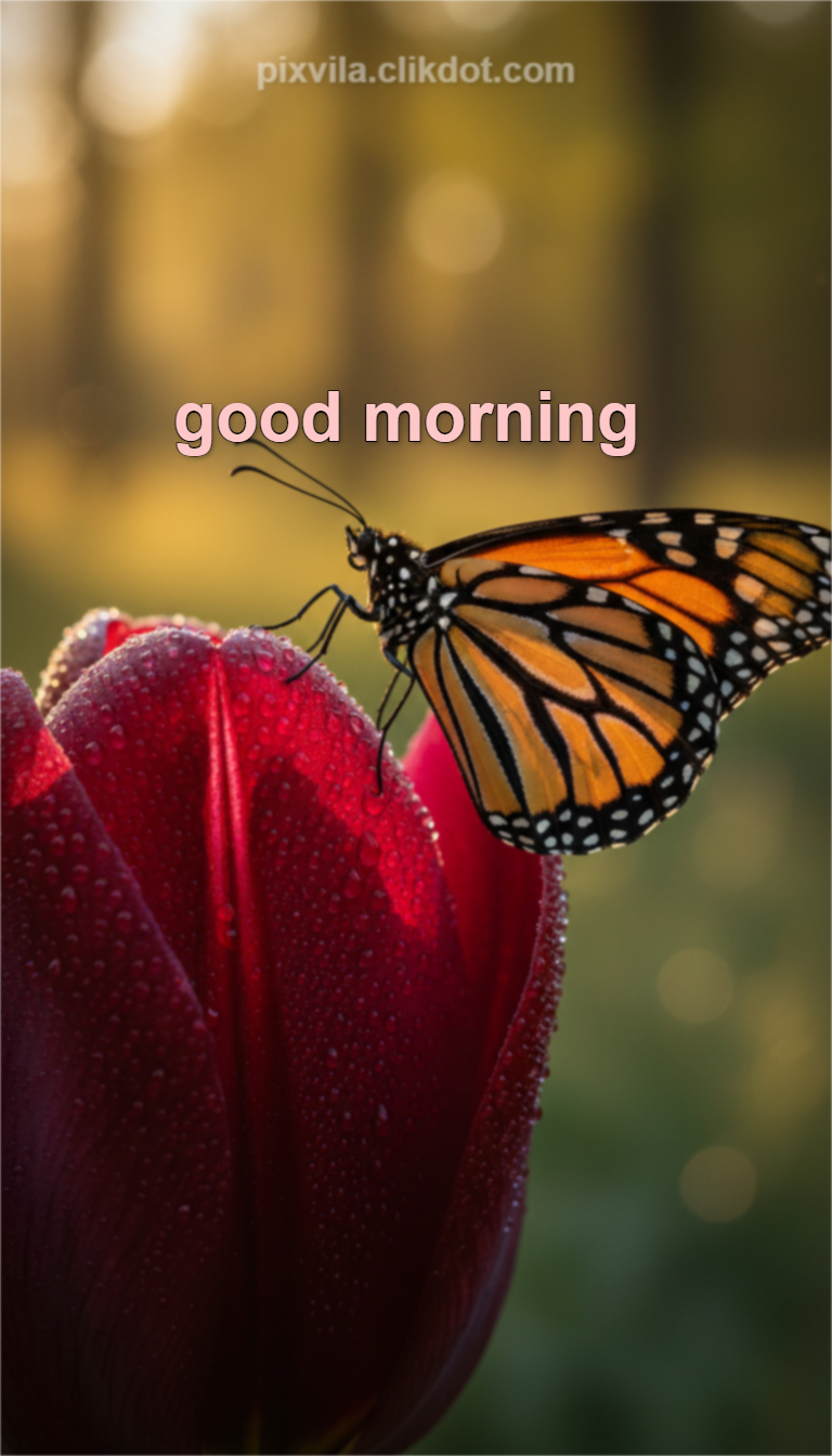 Good Morning Butterfly on Red Tulip – Nature Greeting