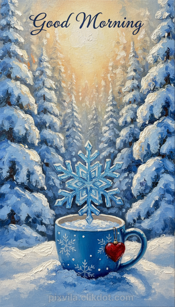 Good Morning Winter Coffee Snowflakes | Cozy Snowy Forest Free Download