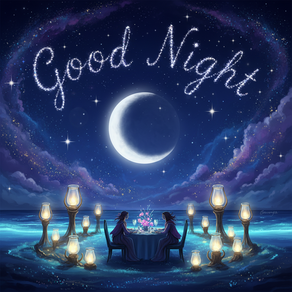 Fantasy Good Night Romantic Dinner on Water Under Moon