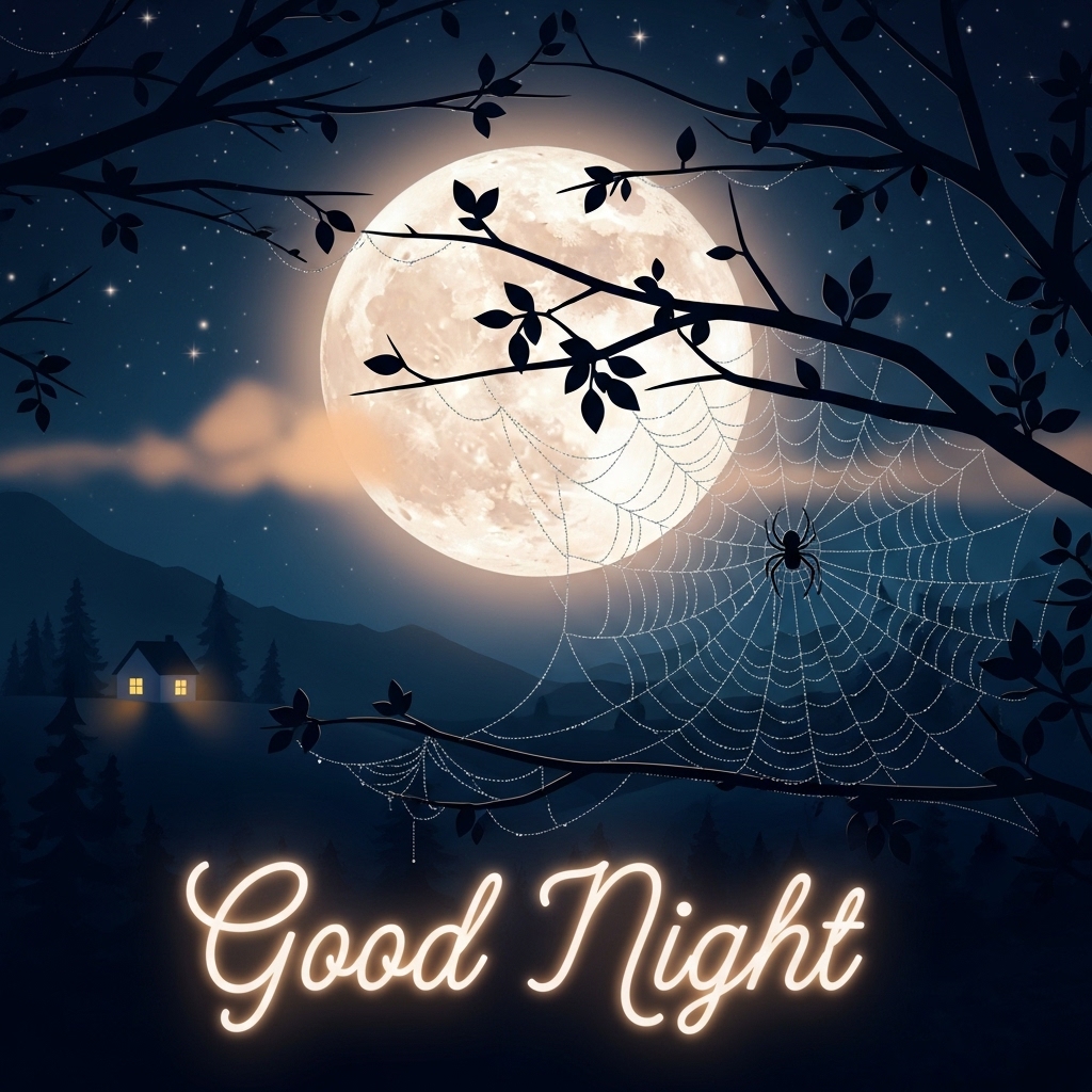 Spooky Good Night Full Moon & Spider Web – Halloween Wallpaper