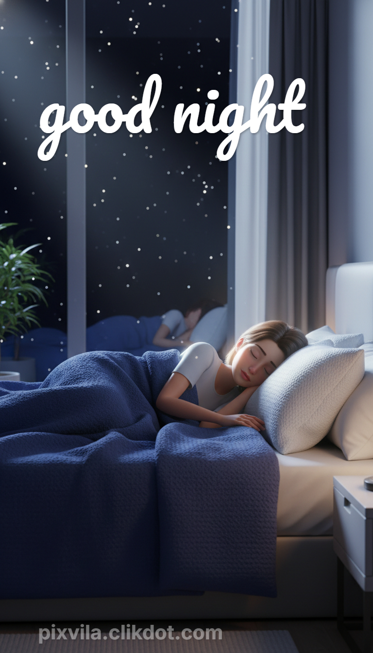 Good Night: Peaceful Sleep Under Starry Sky Bedroom Scene