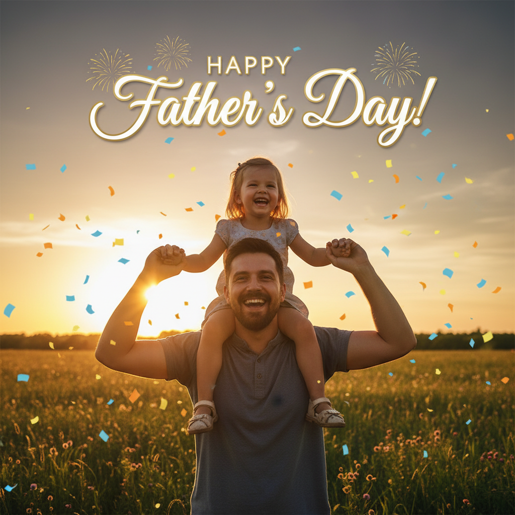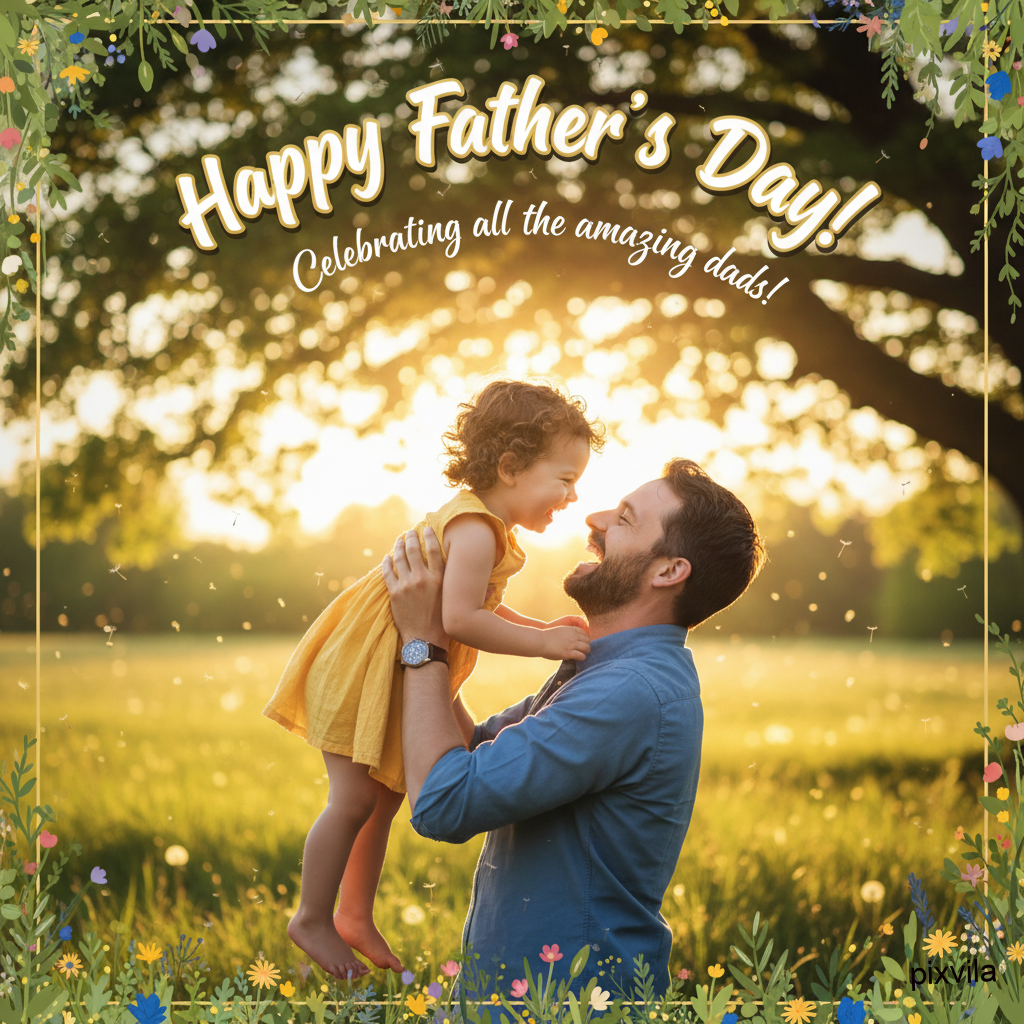 Happy Father’s Day: Joyful Dad & Child Sunset Celebration