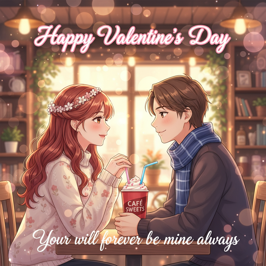 Cute Couple Sharing a Drink on Valentine’s Day | Romantic Illustration